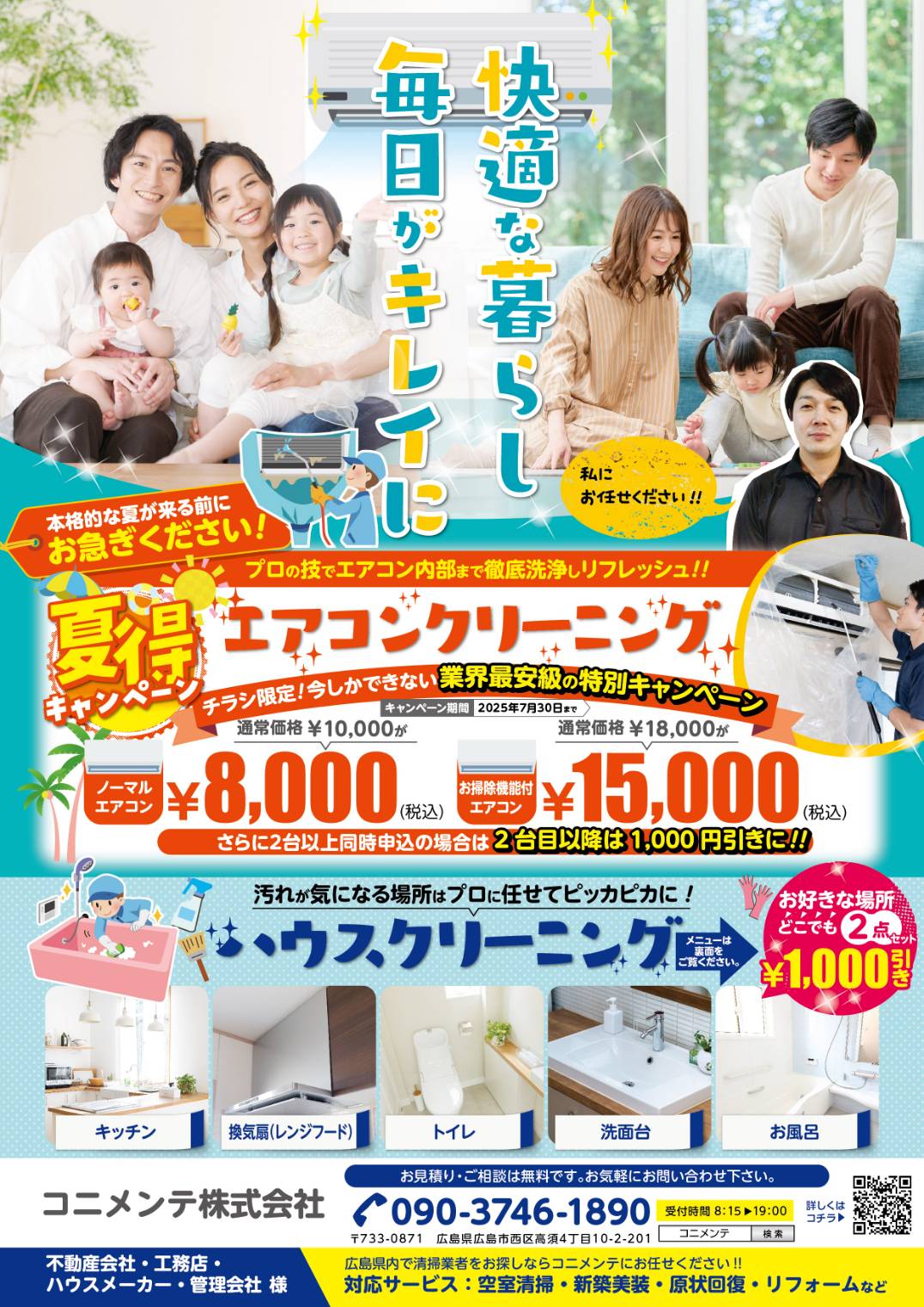 マンションやアパートの管理会社様はもちろん、新築やリフォーム後の清掃をしたいとお考えの不動産・工務店様は、ぜひコニメンテ株式会社にお問い合わせください。